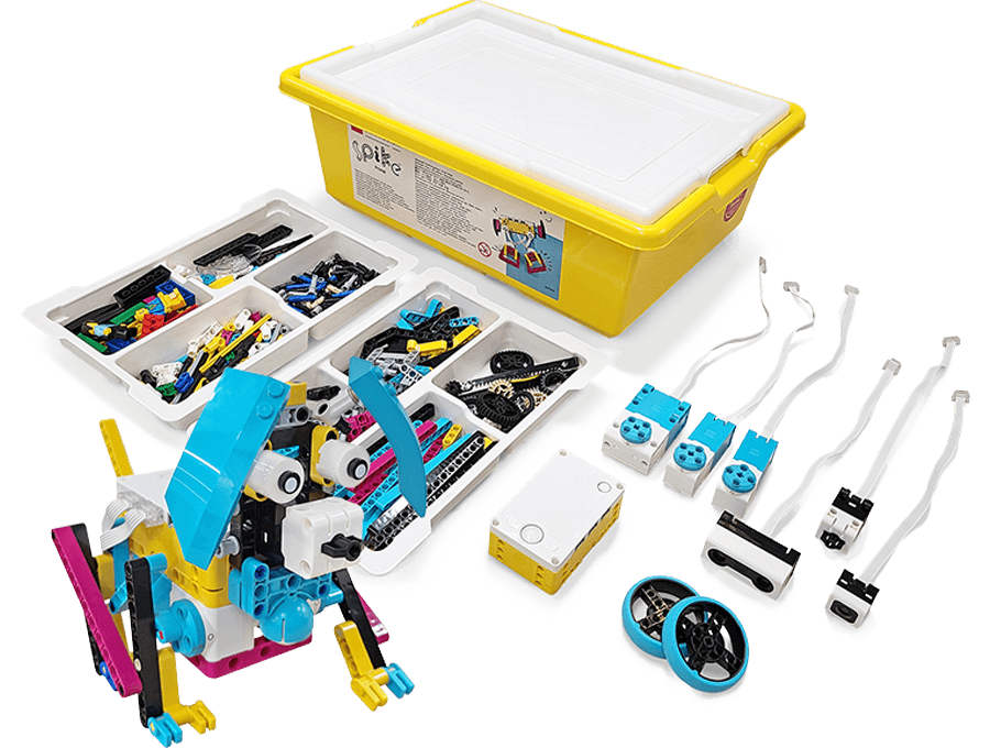 まず最初に、レゴ®の教育ブロックspikeを使ってロボットを組み立てます。かなり複雑なロボットも根気強く作っていきます。
